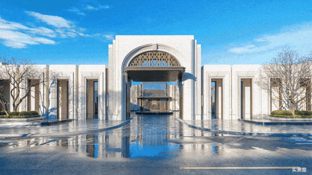 以轴线礼序演绎九拱凯旋门、星柱廊庭、水晶丽宫五重仪礼生活剧场,“一溪一环三轴九境”景观体系,让每一栋建筑都仿佛从风景中自然生长而出。
