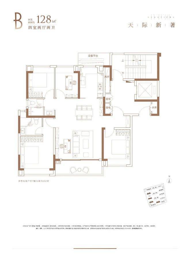 除了建面约170㎡四房,项目还有少量建面约107、128㎡房源在售。