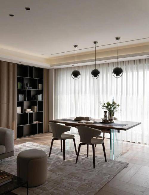 下叠四房两厅三卫的设计。一层南向整体面宽约10.8米,餐客厅一体,连通约7.2米的长阳台,大横厅与落地窗的搭配,增加了室内空间与庭院的互动。一层独立入户,南北通透客餐厅一体的起居空间,足以容纳一个大家庭的节日聚餐或是一场精致的下午茶party。
