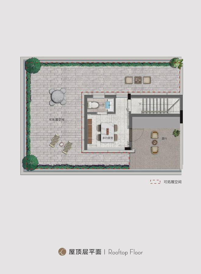 上叠:以195㎡的五房四卫,除了二层规划了朝北露台外,三层的空中阁楼,从多功能空间推门而出,竟然是一个“270°环幕式”生活露台,面积有70㎡左右。它可以是你抽离纷杂尘世的秘密花园,也可以是朋友聚会的快乐之地。