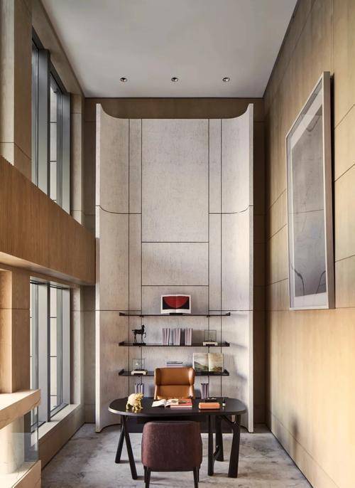 下叠带私享院子,下叠的一楼客餐厅直通约50-60㎡南向庭院,部分可达约100㎡花园,尺度豪华的主卧空间搭配足有7.2米长的连廊阳台,形成“主卧—书房—连廊阳台”的格局,即使起居在二层,也能与自然形成良好的互动。