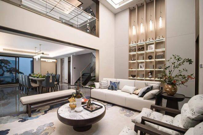 在空间设计上,南向大开间的打造更是独具匠心,平均窗墙比在45%左右。其中首层餐客厅大手笔打造约7米的“IMAX宽屏”落地窗,将窗墙比提升至80%以上,巧妙地融合了自然景致与室内空间。