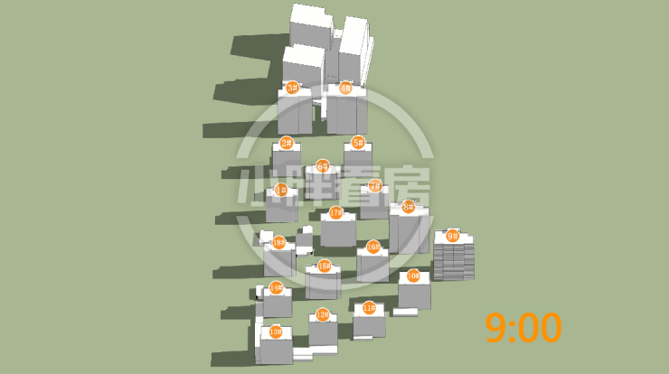 春秋季:9#低层受遮挡。就具体遮挡时间而言,9#主要在下午受10#遮挡。