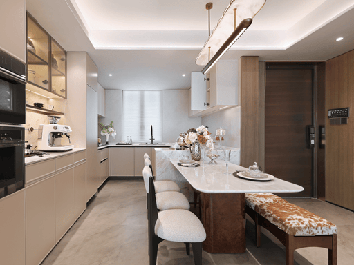 厨房高配:老板三眼灶 + 蒸烤一体机 + 洗碗机,360° 飞碟拉篮、动线合一