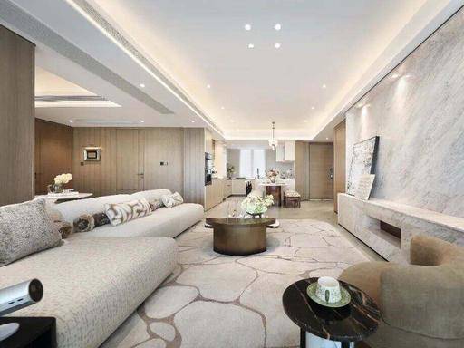 项目建筑设计邀请了九米建筑设计院量身定制,立面风格采用经典锦庐系公建化立面,四面铝板搭配大面积玻璃,封包阳台,整体精致通透,底层以浅色天然石材为主,额外做了圆弧细节,尽显优雅格调。