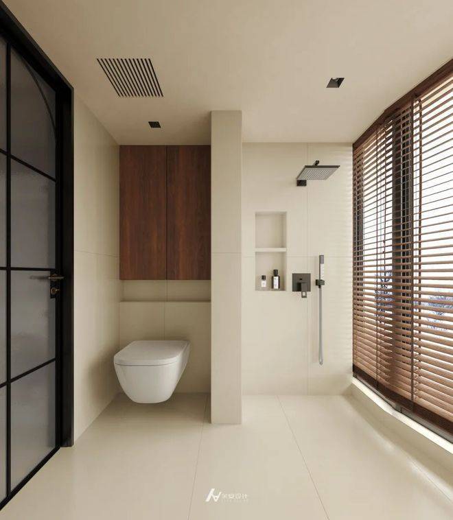 大面积窗幔保障充足自然光线,让空间通透敞亮。功能区延伸自然,一侧可拓展为梳妆区域,另一侧衔接开放式衣帽间,借木质柜体实现收纳与空间过渡,整体既保证居住私密性,又通过开放与连通设计,让空间兼具舒适与实用,诠释现代简约又不失格调的主卧美学 。