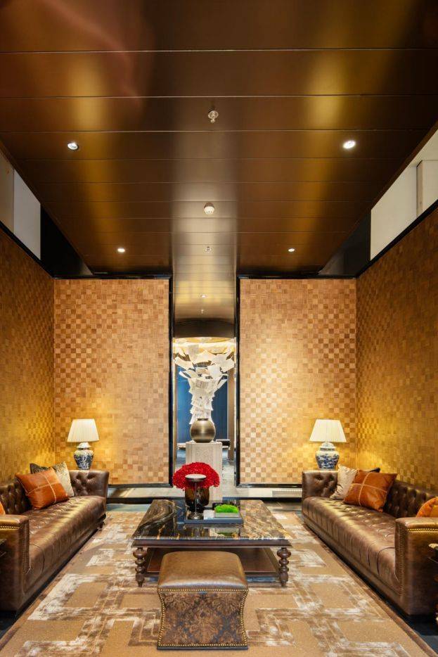 会所依然是CCD操刀设计,所以空间再次从外部的「中式园林」跳转到「现代奢华」的风格。