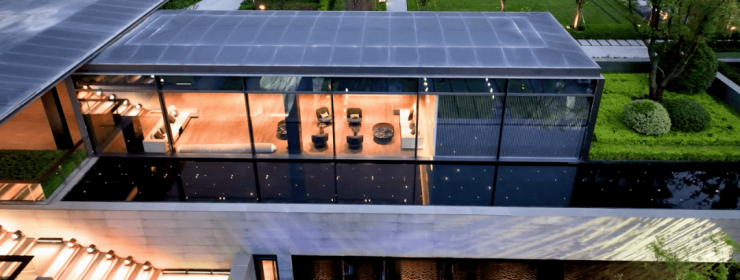整个会所都围绕着下沉式庭院分布,通过每块超白玻璃,巧妙的将庭院里的植物和水景,过渡到室内,使得室内和室外景观“内外合一”。
