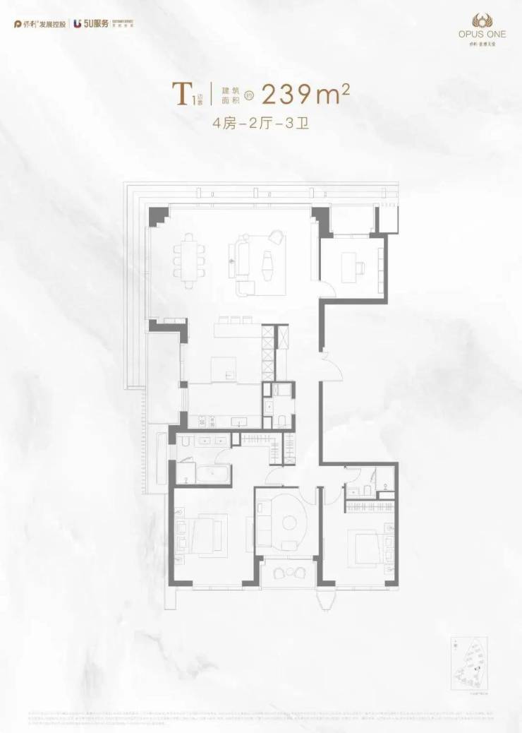 石英石台面、嘉格纳(或同档次)灶具、吸油烟机、洗碗机、冰箱、蒸汽烤箱的厨房六件套;239-251㎡户型并配有酒柜。