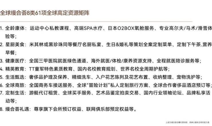 并链接8类61项全球尖端资源,从运动、教育、旅行、医疗等多维度,可谓把全球一线资源与全新生活方式注入古北99,对标国际高端生活标准。