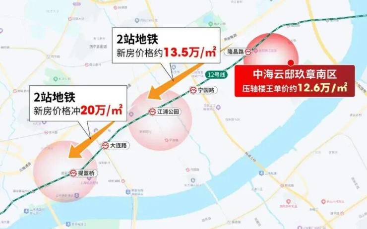 沿着12号线,2站地铁刚开盘的新房13.5万/㎡,再过2站北外滩绿城项目要冲20万/㎡!