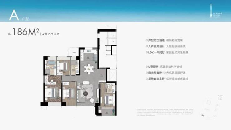 项目首推的是建面约186-237㎡大平层户型,低层大平层还是四代宅产品,错层分布着空中露台。每一个户型都有着大开间、宽视野、多套房等设计。