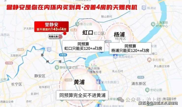 板块内同类产品总价接近2000万级;在静安其他板块如大宁,相似总价仅能购置110m²左右小三房;在虹口或杨浦内环,也选择多为110m²左右小三房。因而,誉静安88以建面约112-119m²大三房实现"相对轻松"的进阶选项,成为改善客户一步到位的理想选择。