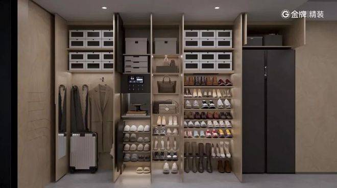 雨伞槽、抽屉式小物收纳、高低频鞋层分区、内嵌式坐凳、扫地机器人预留槽、抽拉换鞋凳,再搭配除湿除臭的“鞋柜精灵”,反正我想得到的、想不到的细节都考虑到了。