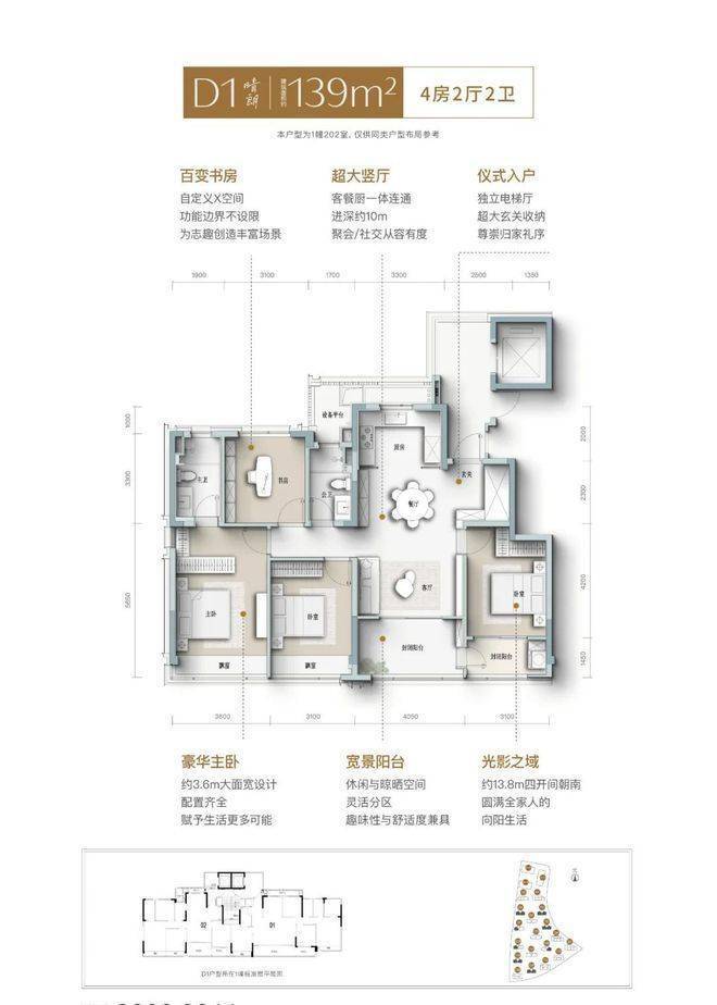 当然,如果还能再加50万预算,可以选择139㎡户型。