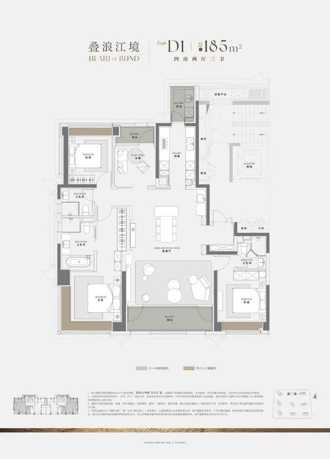建面185㎡户型这是澐启滨江在125㎡~200㎡之间的首次供应,后期的04地块也没有这个面积段。