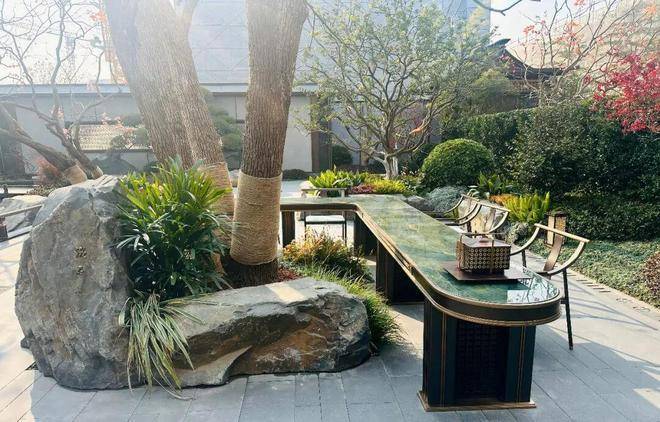 复原“流觞曲水”雅境,致敬《兰亭》遗风。镇园之宝—一棵树龄逾五百年的西班牙古油橄榄巍然屹立,历经万里迁徙,全冠移植于此。此“万木之王”以苍劲姿态,象征智慧、和平与永恒,成为传承的最佳见证。