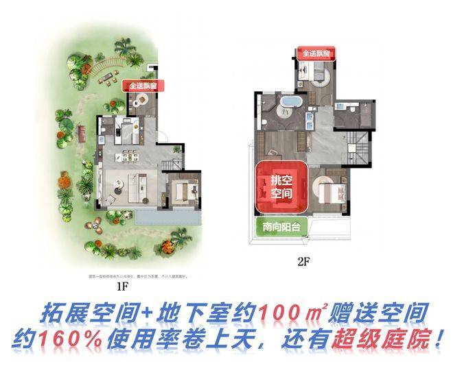 第一.建面约168㎡下叠户型:送地下室!送花园!实际使用率约160%!