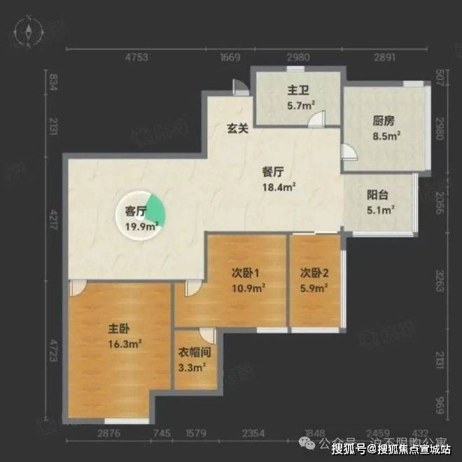 面积117.19平户型:精致全明—3房2厅1厨1卫1阳台