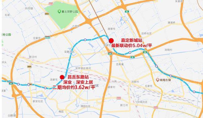 随着去年房地联动价的调整,涨价趋势明显。往前两站的嘉定新城站,在去年土拍中,嘉定新城G09-2地块的联动价攀上5.04万/m²。也就是说,未来想在嘉定买百平米新房,上车门槛直接提升了一个档次。