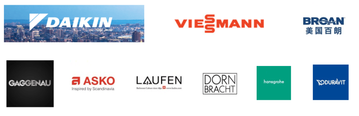 大金空调,菲斯曼地暖,百朗新风,嘉格纳烟机灶具,ASKO厨房五件套(洗碗机,蒸箱,烤箱,冰箱等),劳芬马桶,当代龙头花洒。