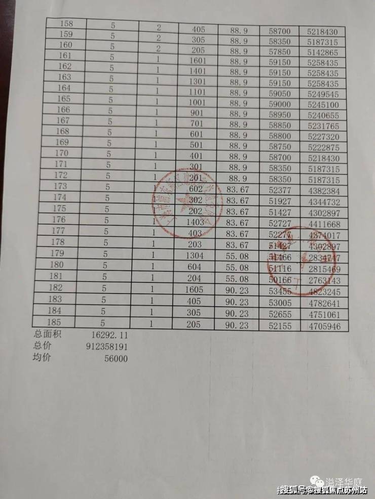 最后,附上完整一房一价表: