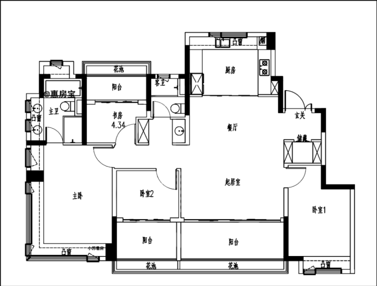 建面约125㎡4房2厅2卫(过程稿仅供参考,以开发商发布信息为准)