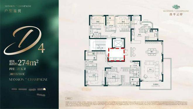 建面约274㎡4房2厅5卫户型