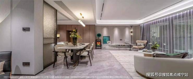 5. 整体采用了海派的装修风格,例如更耗时更费钱的带弧度的半圆形吊顶!以及当大部分项目还在用长虹玻璃时,招商臻境在厨房的三轨道移门处使用了水波纹玻璃,更具奢华感!这样的细节上次还是在看3000万级别的豪宅时才看到!