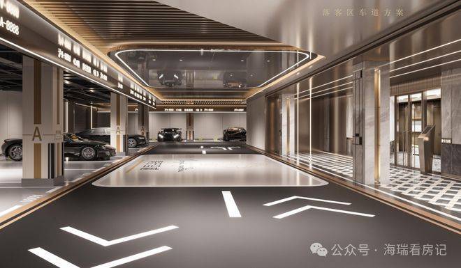 项目车库采用贯穿式鱼尾灯坡道和超耐磨地坪,过道全部是精装吊顶,地下管道和局部区域进行二次包裹!