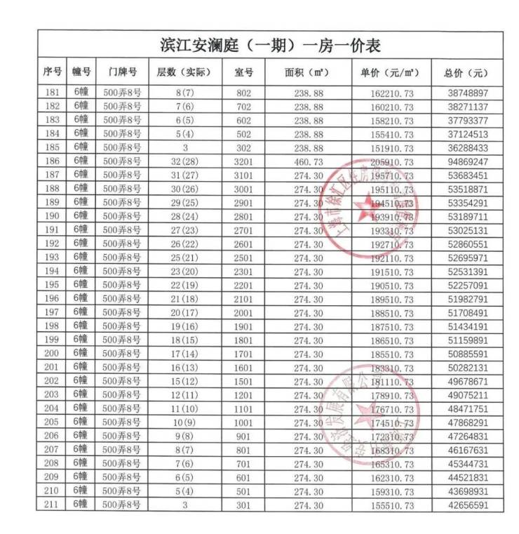 【安澜上海】一房一价表: