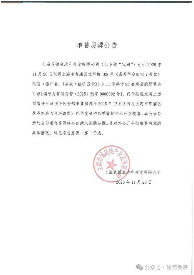据悉,【华发·虹桥四季】推出建面约90-130㎡3-4房,共计609套房源,均价55969元/㎡,本次加推98套建面约90-130㎡3-4房,均价56651元/㎡,11月22日认购,售楼处线上预约!