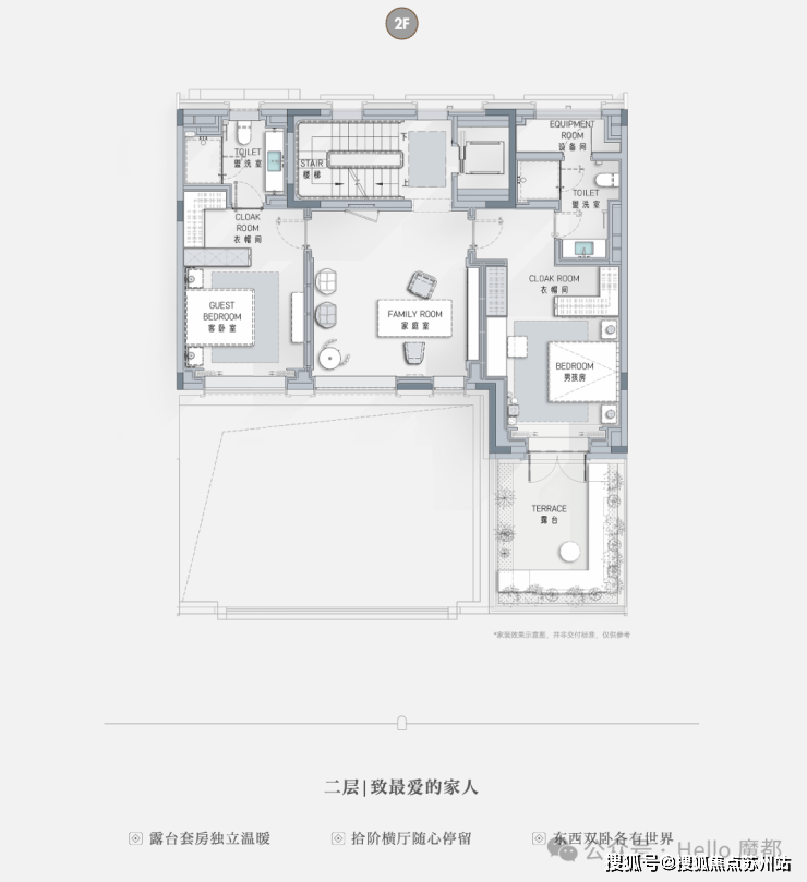 一层长辈套房设计,南向独立小庭院,莳花弄草,晨练太极自在四季