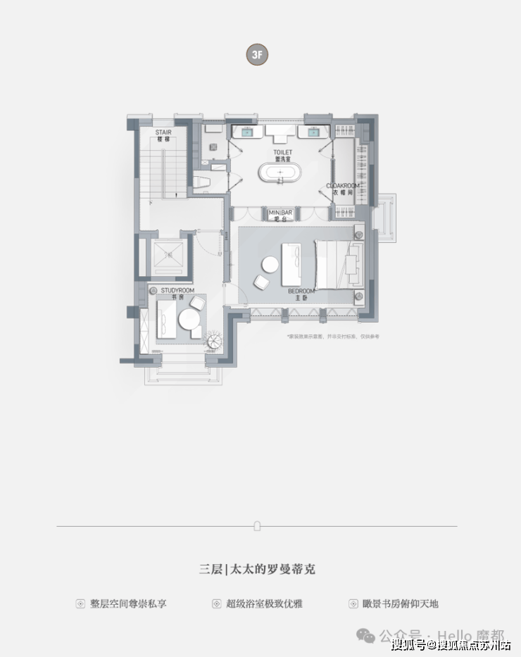 主卧双卫双步入式衣帽间,淋浴、花洒、桑拿房,相爱却各有私密