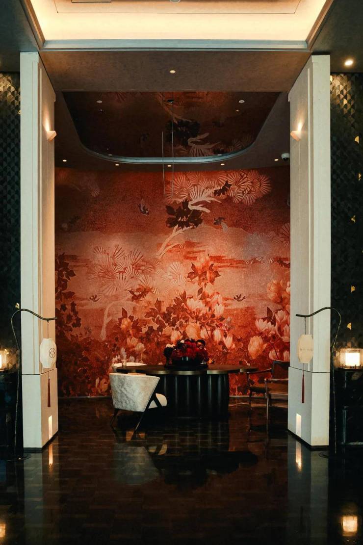 当然,这并不是金茂璞元示范区的全部,海鸥丽晶同款的大漆艺术装置、掐丝珐琅工艺的桌子台面、金箔艺术壁布、中式花艺搭配东方意境的花房、铜织锦雕塑艺术品.....还有很多惊喜等待大家发现