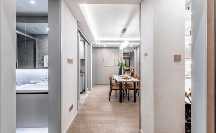 一个亮点在于,还拥有入户独立玄关,不仅保障私密性,而且玄关的储物空间也不小,一家人的生活全部照顾得到。既然做出了如此多大户型才有的细节,那新乐里的必然压缩了某些需求吧,如果这么想,你就输了。毕竟就连厨房都给你考虑的清清楚楚,厨房为U型厨房设计,还能容下一个双开门冰箱!此刻,是不是惊喜等级又上一层楼。考虑得如此周到,这在上海的不足百平的户型中,可谓不常见。