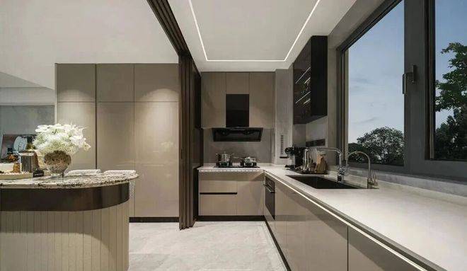 洄游式归家动线、中西双厨联动、独立的家政间和南向的功能性阳台,则全方位满足了对功能空间有更多需求的家庭。