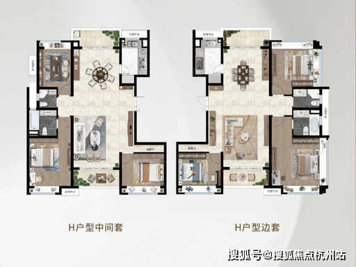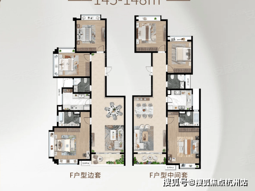 142-148㎡三房两厅两卫:横厅设计,双阳台 + 飘窗,空间舒展,二胎家庭优选。
