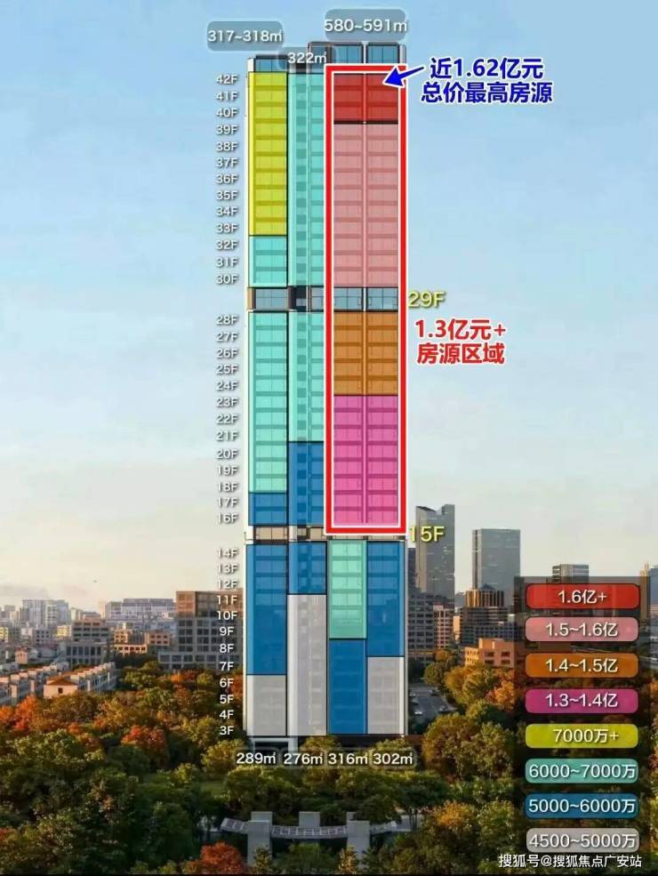 低区280平户型,单价约16w左右起,总价约4500万起;(已售罄)