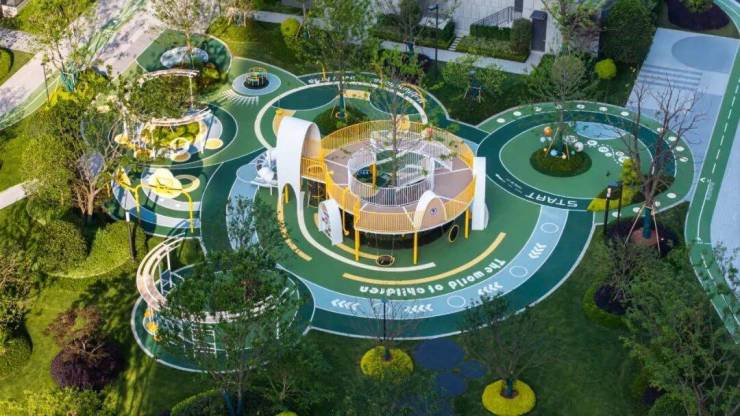 园区中还打造了森屿乐园,以“自然岛屿的奇幻冒险”为灵感,通过圆形的设计语言,科学分区,适龄成长,环形动线串联不同区域,让孩子在自然互动中激发创造力与协作力。