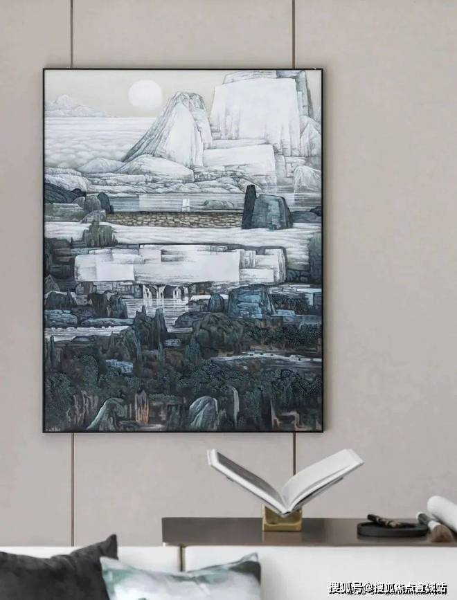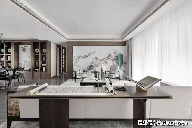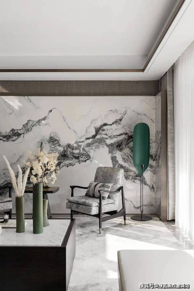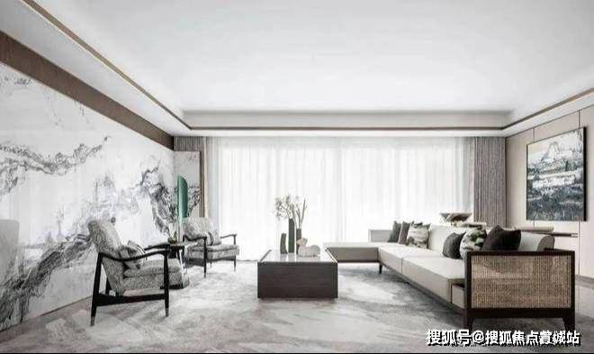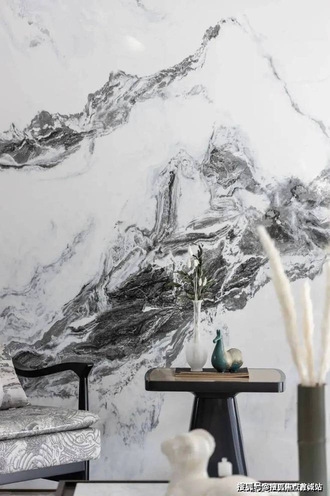 苏河瑾栖售楼处营销中心:400-8118-224苏河瑾栖售楼处电话/地址☎:400-8118-224(开发商热线)走进客厅之中,仿佛步入一幅山水画作之中一般.组合式的大理石岩板背景墙,以屏风式的形制,赋予了空间一派悠然自得的气韵.