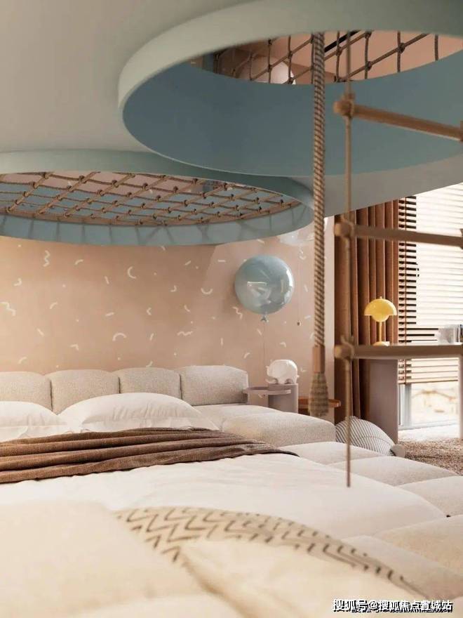 儿童区域则增添了更多的色彩,备显轻松、活力,浅蓝色让人如临海洋,黄色积极活泼有张力,而米色作为主颜色打底,遍布整体空间,来给予温馨、居家的氛围感。