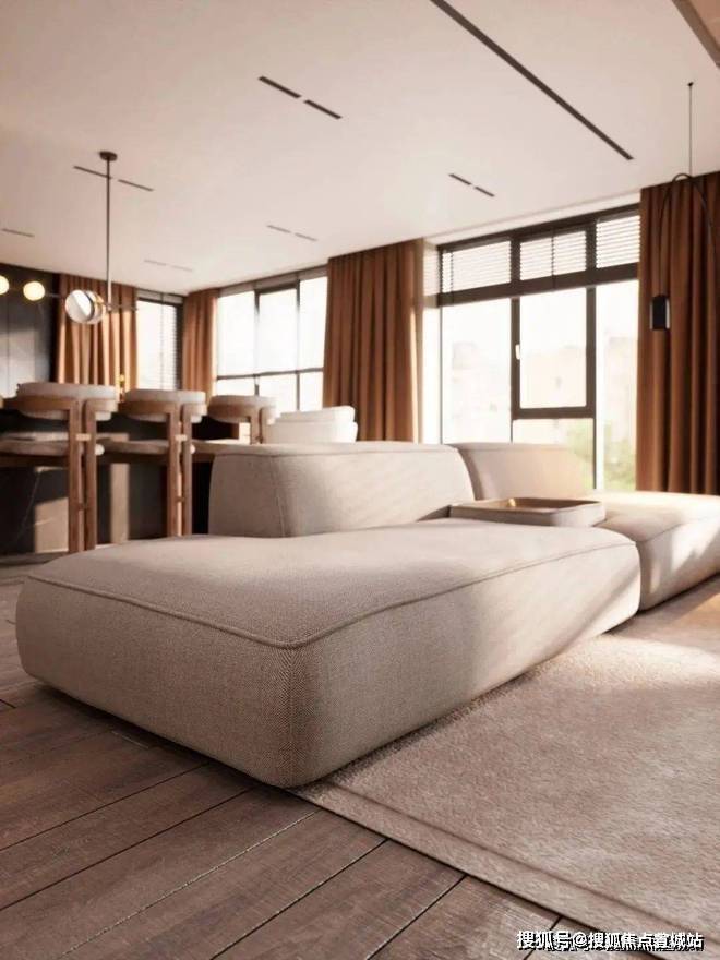 客厅的观感舒适而有格调,半面的自然光线引入空间,软包沙发烘托出沁人心脾的柔和氛围。一桌、一椅、一凳,都融合的恰到好处。