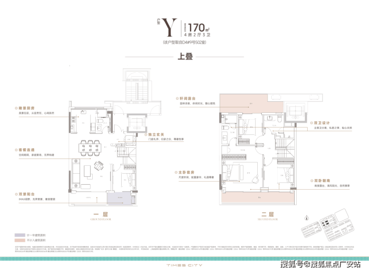 170m²上叠,南向双阳台+南北双露台: