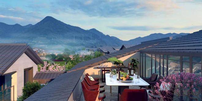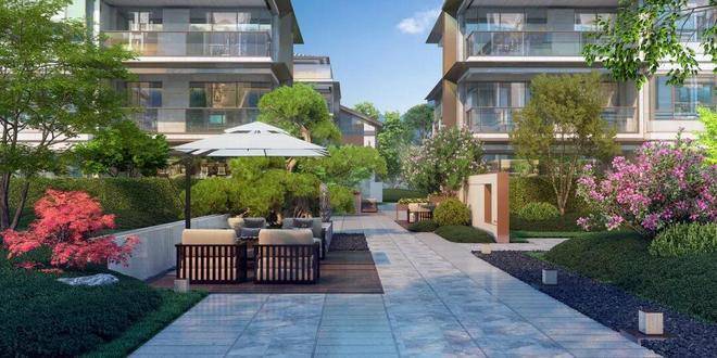 再有一方低密叠墅的院子,诗酒茶香,花草相伴,这样的生活简直美好如仙境。草木、阳光、清风,尤其是起伏绵延的万亩龙井茶园景观,如诗如画的自然风光,掩映在风景里,浪漫而震撼。