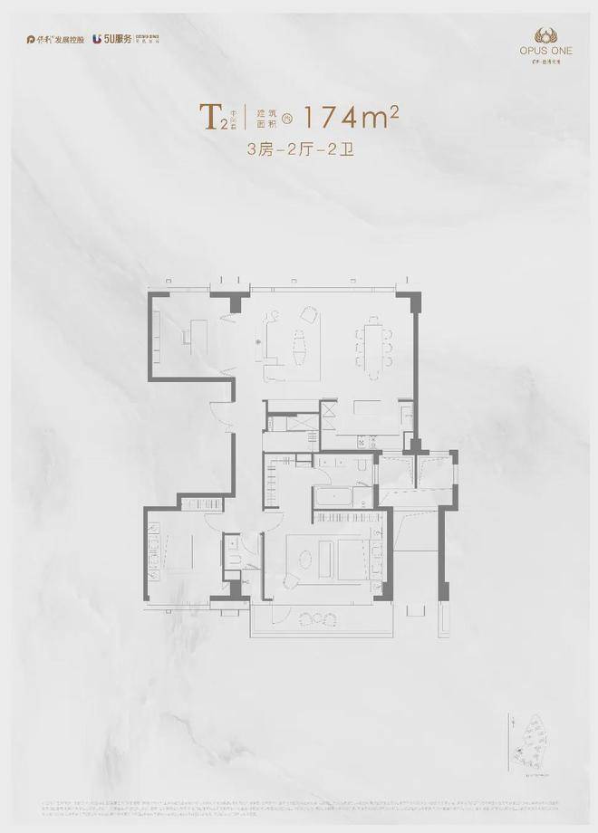 ⑥ 174m²客厅8.2米/奢侈三房/主卧开间5.7米/最小卧室约14m²