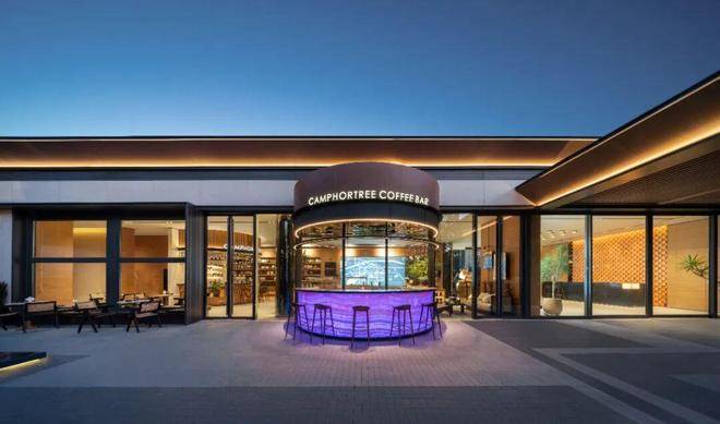 崇璟和颂府以承载城市记忆的百年香樟为情感符号,打造符合当代年轻人“日咖夜酒”的coffee bar作为开放式社区前场。