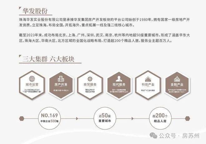 华发股份在房地产领域精研 40 余年,进驻全国近 50 座城市,打造超 200 个精品项目,深耕苏州 8 载,成功打造姑苏院子等项目,人居口碑颇丰。