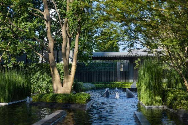 植物的选择,都经过详细的规划。把落叶和常绿的比例由3:7更换为4:6,可以让整个园林在四季交替间,呈现出更鲜明的自然更迭。在树种选择上,不仅都是全冠移植,精挑细选,门口的香樟树,更是团队行上万公里,挑千棵树后才找到的。