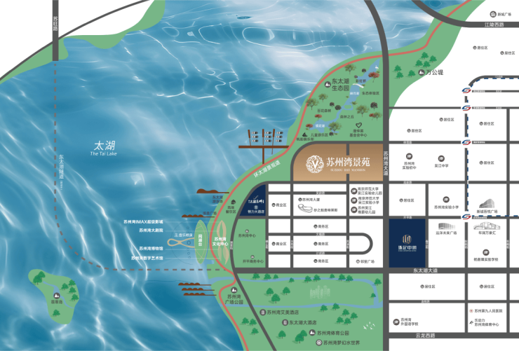 坐拥全龄优质教育,近享 1200 亩东太湖生态园、21.5 万㎡苏州湾文化中心、阅湖台、音乐喷泉等城市公建配套。